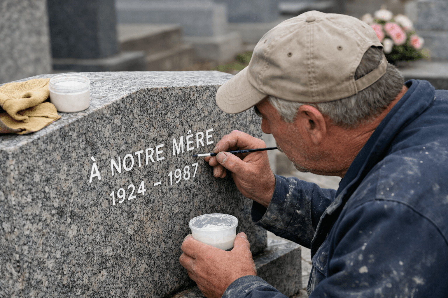 Cette option présente toutefois des limites importantes. Sans expérience, le risque de débordement de peinture, d’application inégale ou de choix inadapté de produits peut compromettre le résultat final. De plus, certains cimetières imposent des restrictions sur les interventions non professionnelles. Pour un rendu durable et esthétique, le recours à un marbrier funéraire qualifié reste la solution la plus sûre.