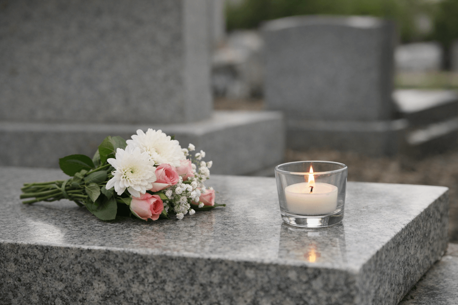 - Les fleurs, plaques funéraires et objets décoratifs permettent de créer un espace de recueillement unique et personnel